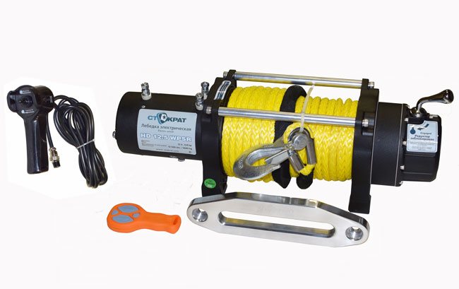 Лебедка автомобильная СТОКРАТ HD 12.5 WPSR, 12 Вольт с синтетическим тросом и радиопультом.